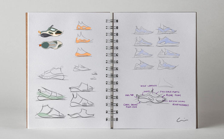 The outsole featured on this piece is molded from recycled and reinforced coral.