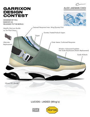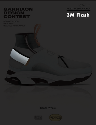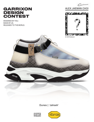The shoe 'Andy' was selected as a finalist in the top 16 of the Atmos/Garrixon sneaker design contest by renowned Atmos artist Koji Hirofumi